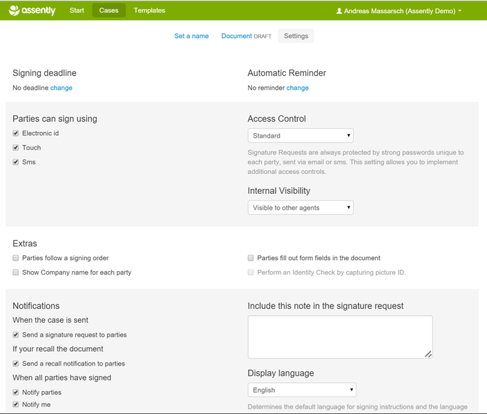 Send document for signing